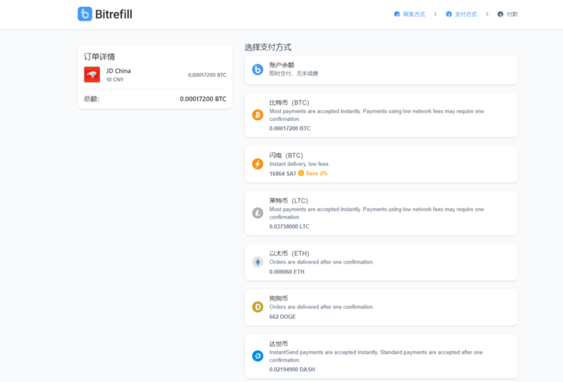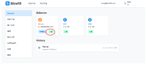 用比特币为账户充值