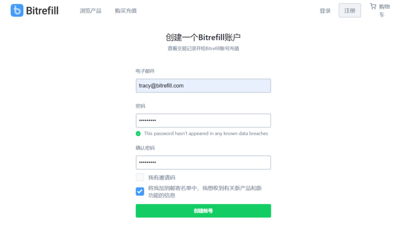 然后输入您的邮箱并设定密码。您可以选择加入我们的邮寄名单,订阅我们关于最新产品和服务的电子报。(我们坚决不会给您发垃圾邮件或把您的邮箱透露给任何人)。