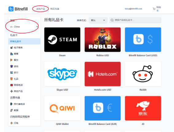 在Bitrefill您可以买到170多个国家的2500多种产品,包括很多世界知名的品牌,各种餐饮,娱乐项目的礼券礼品卡。